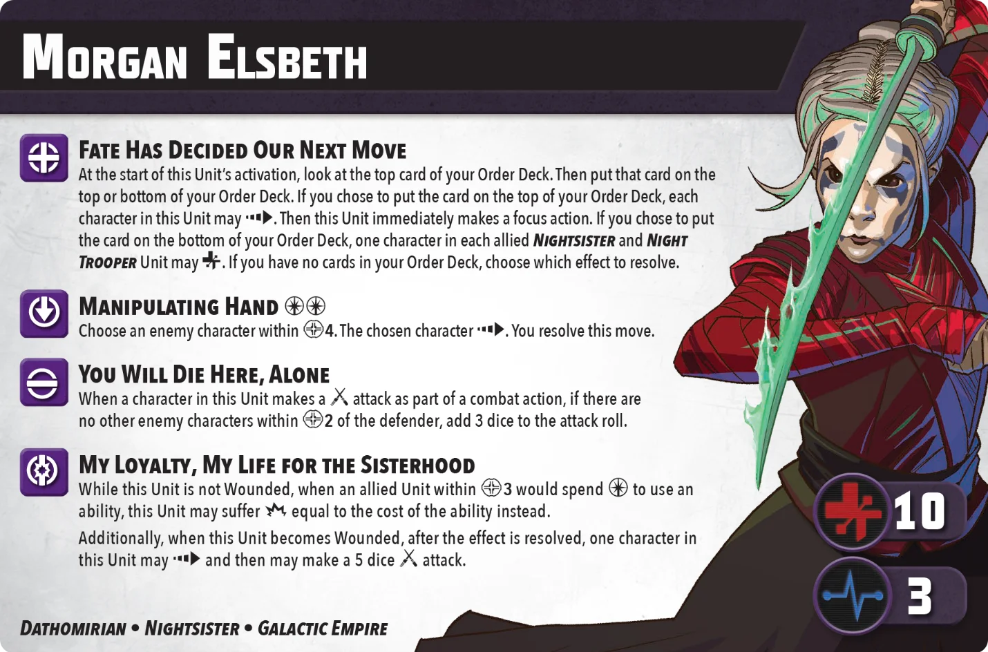 . Then this Unit immediately makes a focus action. If you chose to put the card on the bottom of your Order Deck, one character in each allied Nightsister and Night Trooper Unit may